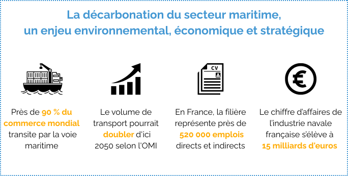 Sa décarbonation est donc essentielle pour atteindre notre objectif de zéro émissions nette d’ici 2050. A ce titre, elle devra mobiliser l’ensemble des acteurs de la chaîne de valeur du maritime